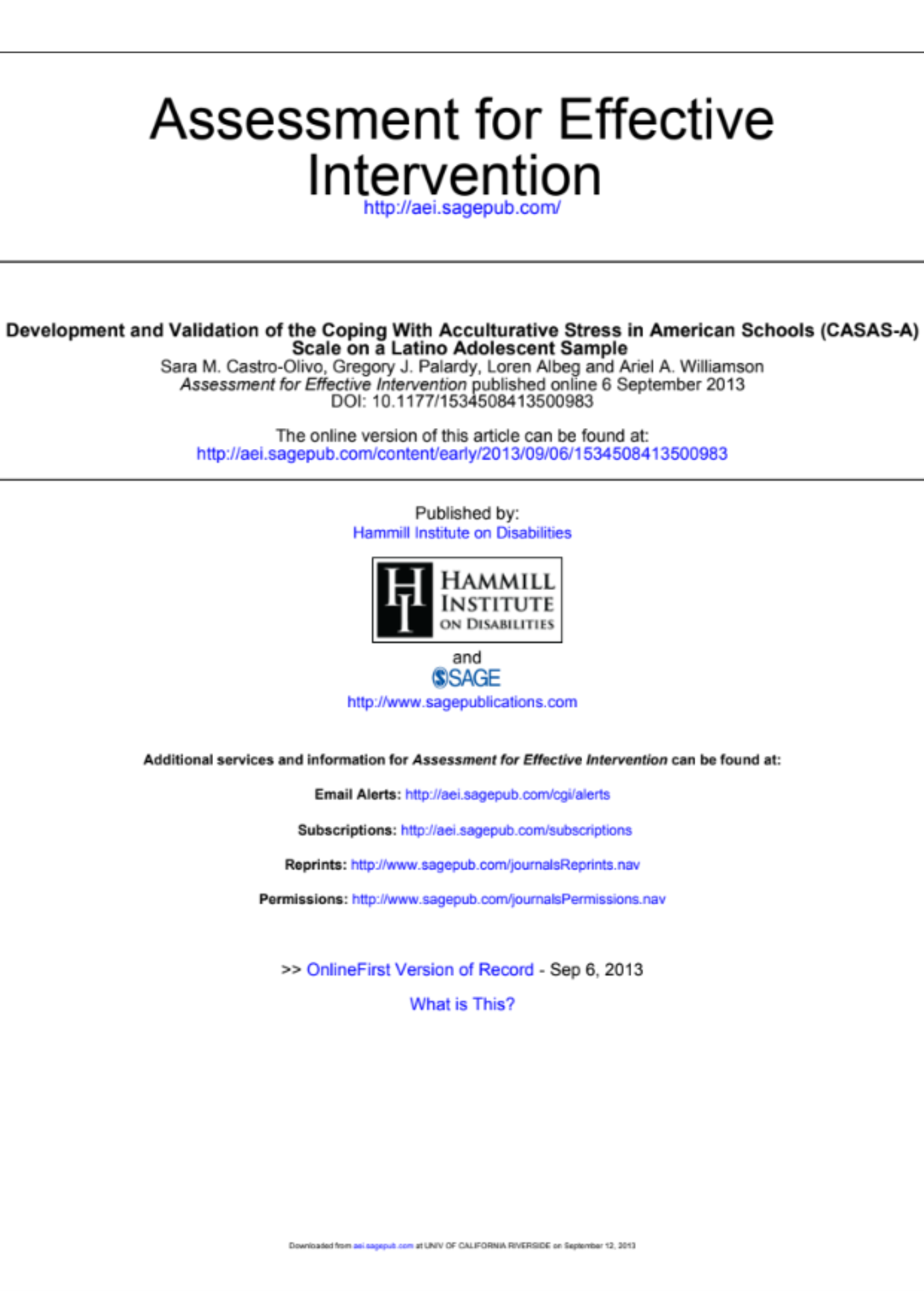 Development and Validation of the Coping With Acculturative Stress in American Schools (CASAS-A) Scale